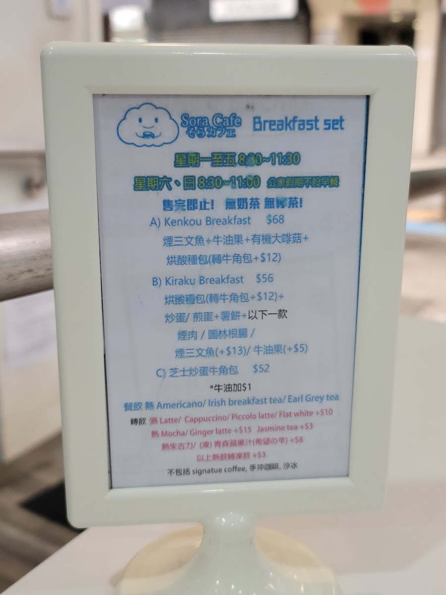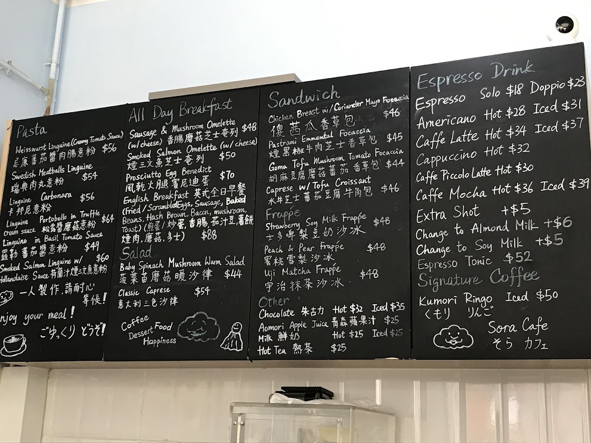Sora Cafe Menu